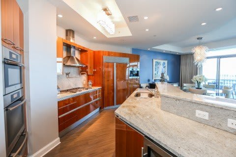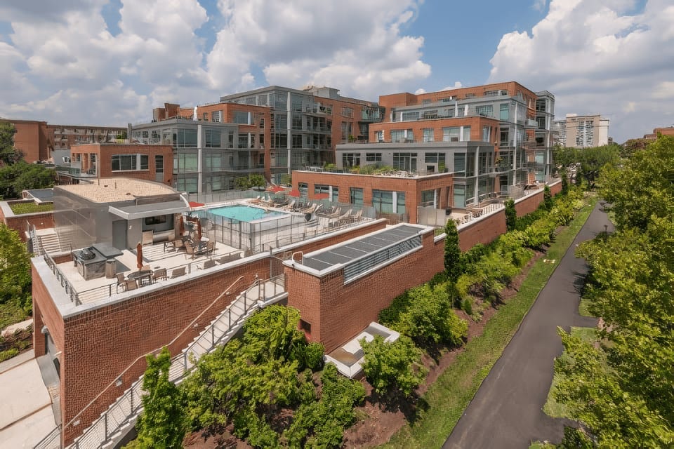 Built in 2014, this condo at the Oronoco in Old Town Alexandria has Potomac River views from most rooms and from a large balcony. The condo has more than 2,000 square feet with an open floor plan, a center-island kitchen with quartz counters and upgraded appliances, two bedrooms and three bathrooms. The unit comes with two garage parking spaces. Amenities in the building include a heated swimming pool, a fitness center and concierge services.