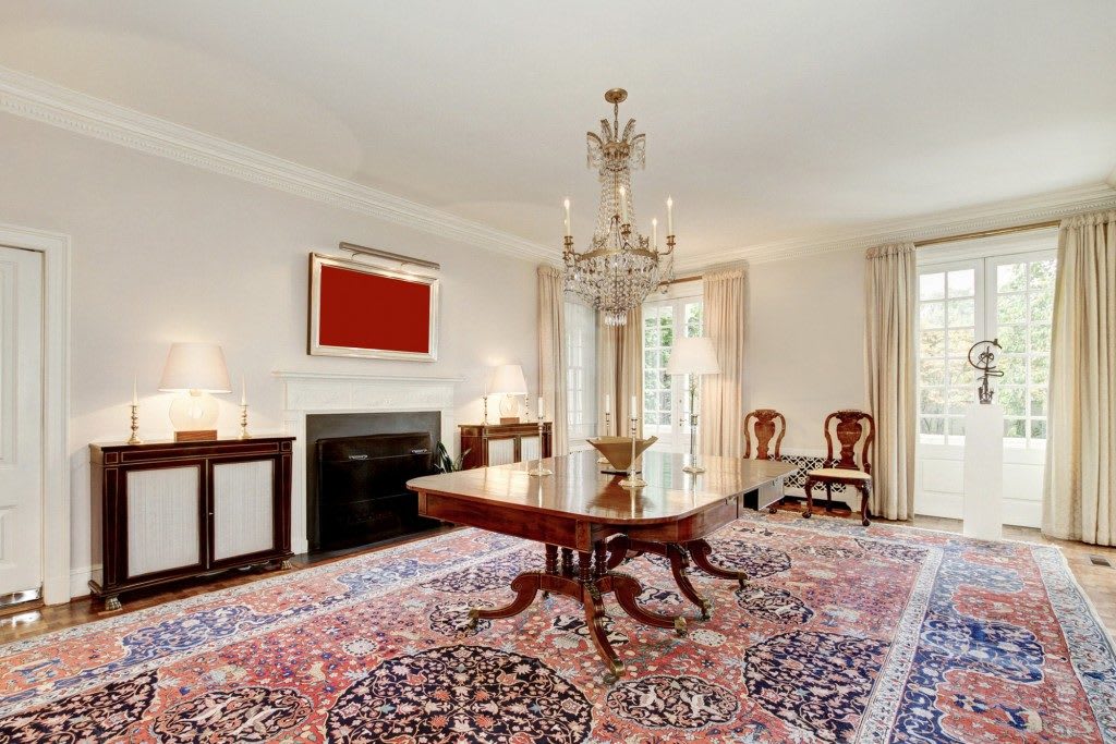 This six-bedroom, seven-bathroom residence in Kalorama includes formal living and dining rooms, a conservatory, a family room with 11-foot-high ceilings and a deck with views of the city. The home, built in 1930, has four stories, four fireplaces, an elevator and a master suite with two bathrooms. The grounds include gardens, terraces and a detached four-car garage.
