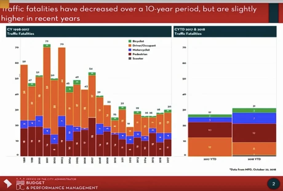 “What is particularly troublesome for us is the spike in pedestrian, bicyclist, and motorcycle fatalities,” District Department of Transportation Director Jeff Marootian told lawmakers at a regularly scheduled breakfast meeting between Bowser and the D.C. Council on Tuesday.